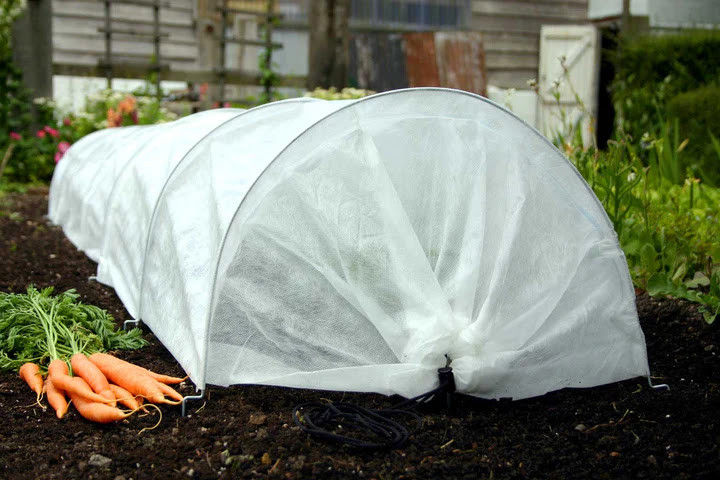 A fátyolfólia alagút használata megvédi a növényeket a fagyoktól, a zord időjárástól és a kártevőktől.